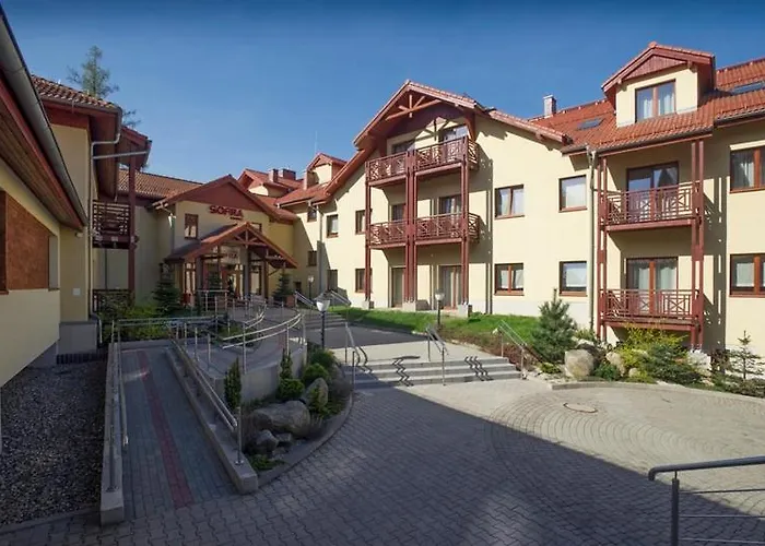 Das Hotel Instytut Zdrowia Sofra Fit & Spa Karpacz liegt in 7 Gehminuten Entfernung vom Skilift Relax und bietet WLAN im ganzen Gebäude und Parkplätze.